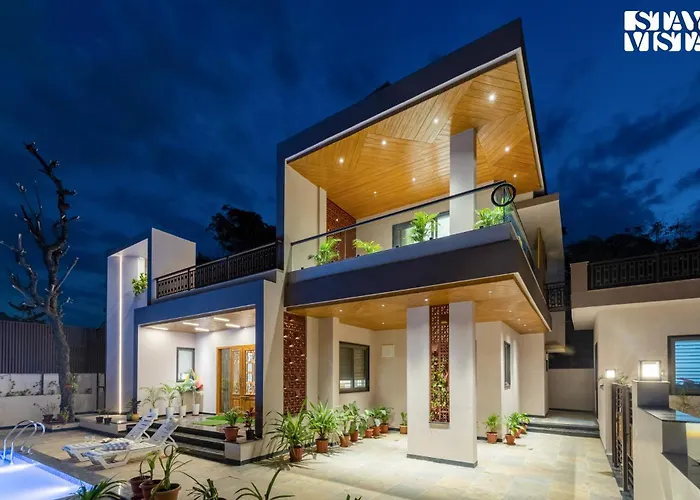 Nakeshatra Villa By Veo - Part Of Stayvista With Pool, Lawn, Balcony At City Center In Udaipur оснащені холодильником на додаток до мінікухні. На близькій відстані від вілли гостей пригощають стравами китайської кухні в ресторані Navidya Restaurant. Вілла також розташована на відстані 12 км від залізничного вокзалу Udaipur. У готелі є тераса, на якій можна відпочити після напруженого дня, а також приватний басейн.